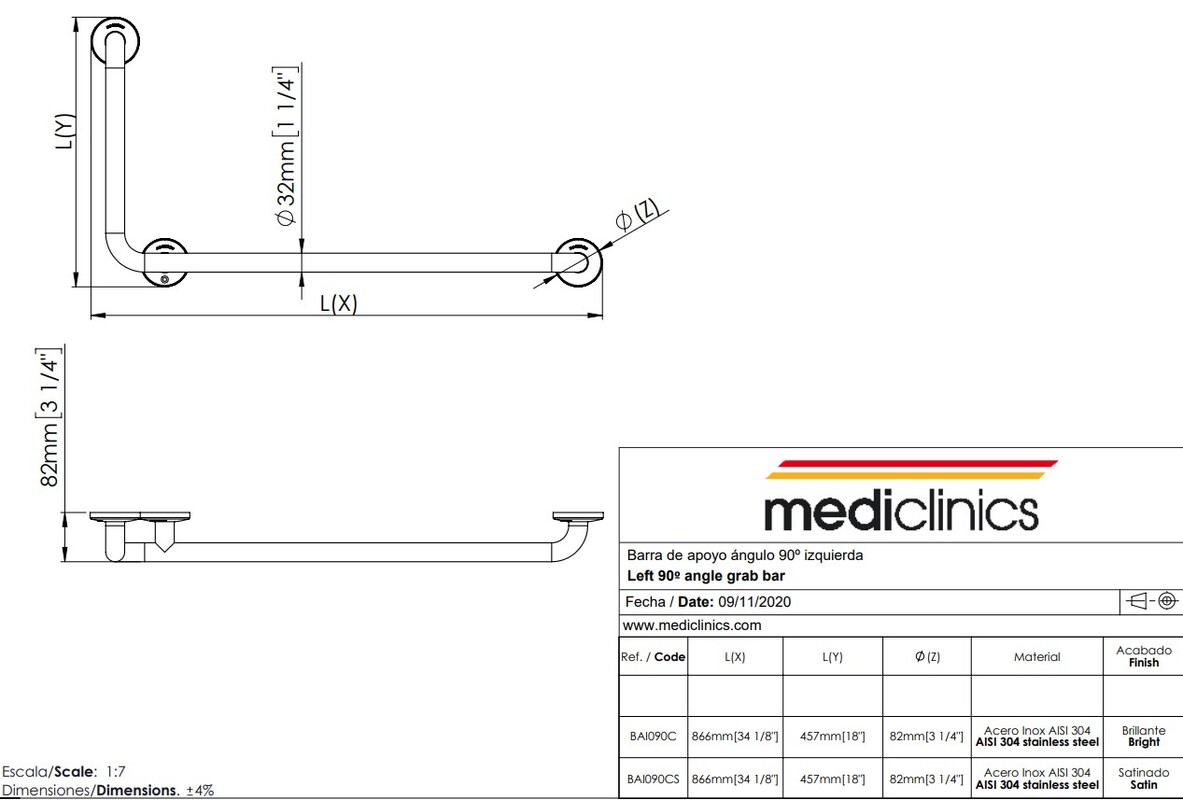 - Tip produs: bară de sprijin înclinată la 90º stânga