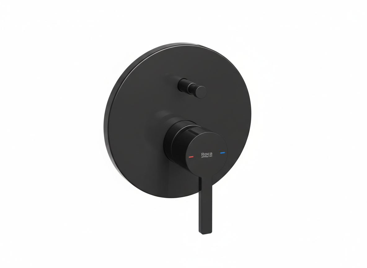 Bateria încastrată din colecția Naia pentru cadă și duș combină estetica minimalistă cu tehnologia avansată, oferind o soluție modernă pentru spațiile sanitare actuale. Finisajul negru șlefuit (Titanium Black) conferă produsului un aspect sofisticat și o rezistență sporită la coroziune și depuneri de calcar. Echipată cu un divertor automat, bateria permite comutarea precisă între două ieșiri de apă, asigurând un confort optim în utilizare. Cartușul ceramic garantează o reglare lină a temperaturii și a debitului, în timp ce montajul ascuns eliberează spațiul pe perete, creând un interior curat și ordonat.