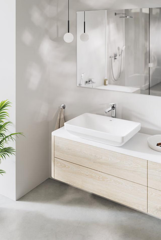 Bateria de lavoar XL din colecția Cubeo reprezintă o soluție ideală pentru lavoarele tip bol, combinând un profil cuboid modern cu performanțe ecologice. Designul ergonomic cu mâner metalic solid permite controlul lin al apei, în timp ce înălțimea ridicată asigură un confort sporit în utilizarea zilnică. Aeratorul reglabil AquaGuide permite orientarea precisă a jetului în funcție de geometria lavoarului, prevenind stropirea accidentală a suprafețelor adiacente. Tehnologia de economisire a apei reduce consumul fără a compromite eficiența fluxului.