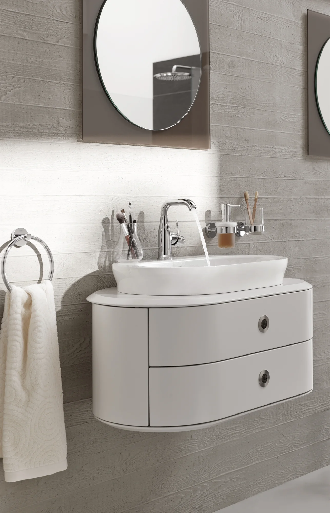 Bateria de lavoar de mărime medie din colecția Essence se distinge prin designul său minimalist bazat pe forme cilindrice perfecte, oferind un aspect modern și curat oricărei băi. Finisajul cromat strălucitor, realizat prin tehnologia StarLight, asigură o rezistență ridicată la zgârieturi și o întreținere facilă pentru o perioadă lungă de timp. Tehnologia SilkMove permite un control extrem de lin și precis al debitului și temperaturii apei. Pipa pivotantă adaugă un plus de confort, oferind flexibilitate în direcționarea apei, în timp ce aeratorul reglabil AquaGuide permite adaptarea jetului la forma lavoarului pentru a evita stropirea.