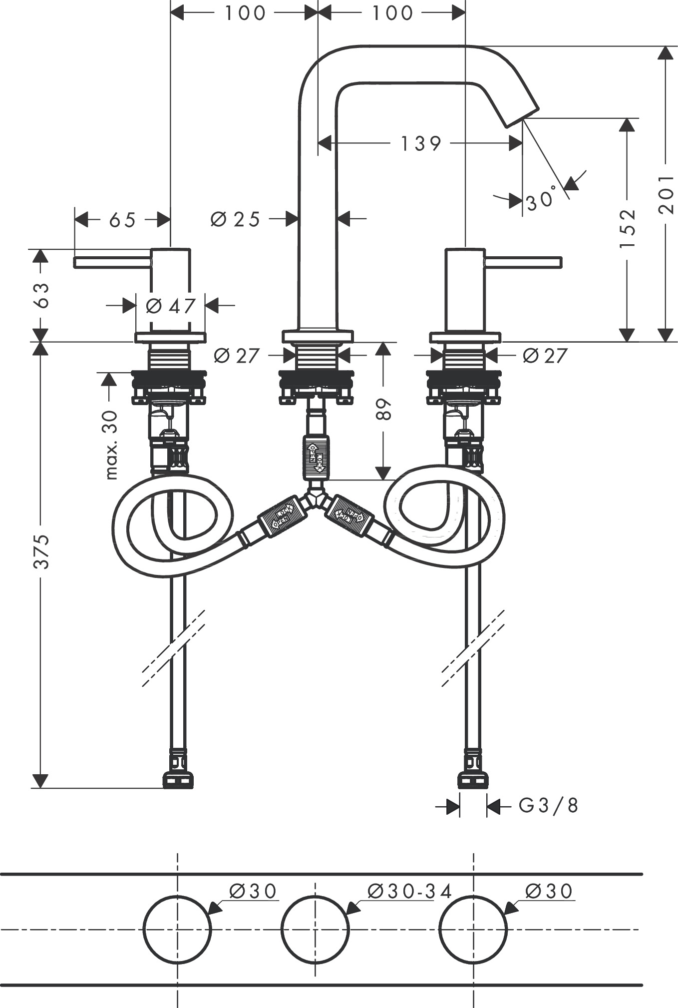 Baterie Hansgrohe TECTURIS S lavoar montaj blat 3 cai, BB