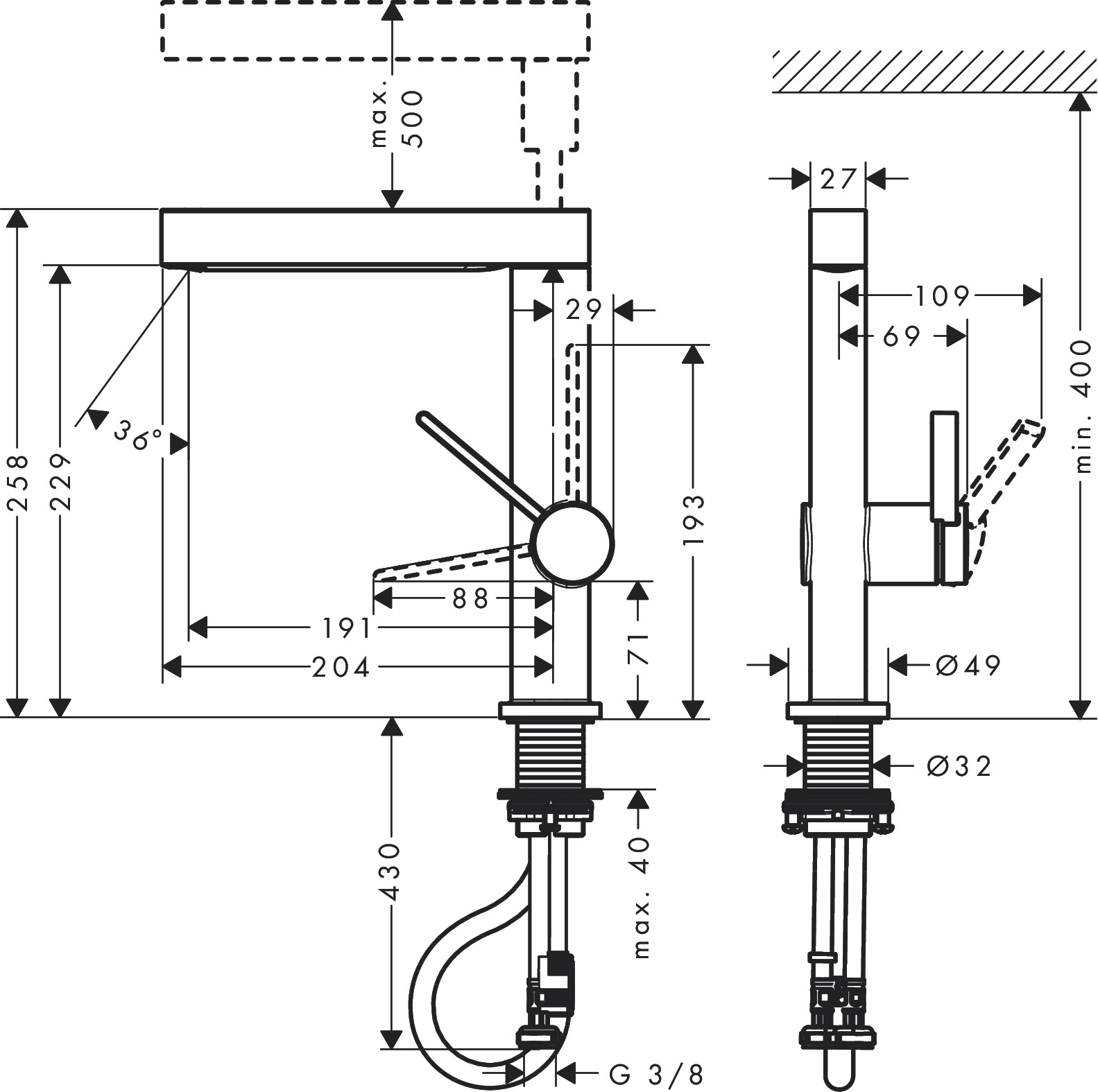 - duș extractibil cu lungime de 500 mm pentru versatilitate maximă