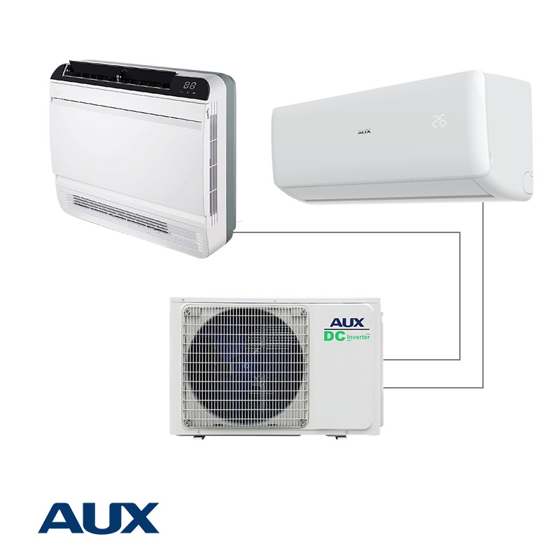 Unitatea AUX este echipată cu un compresor DC Twin Rotor Inverter și un motor de ventilator cu trei viteze, care ajustează automat frecvența de operare pentru a răspunde cerințelor de capacitate, asigurând astfel o eficiență energetică ridicată și un timp rapid de răcire și încălzire. Prin utilizarea tehnologiei avansate DC Inverter cu undă sinusoidală de 180° și PFC activ, unitatea funcționează mai silențios și mai economic, oferind un confort sporit.