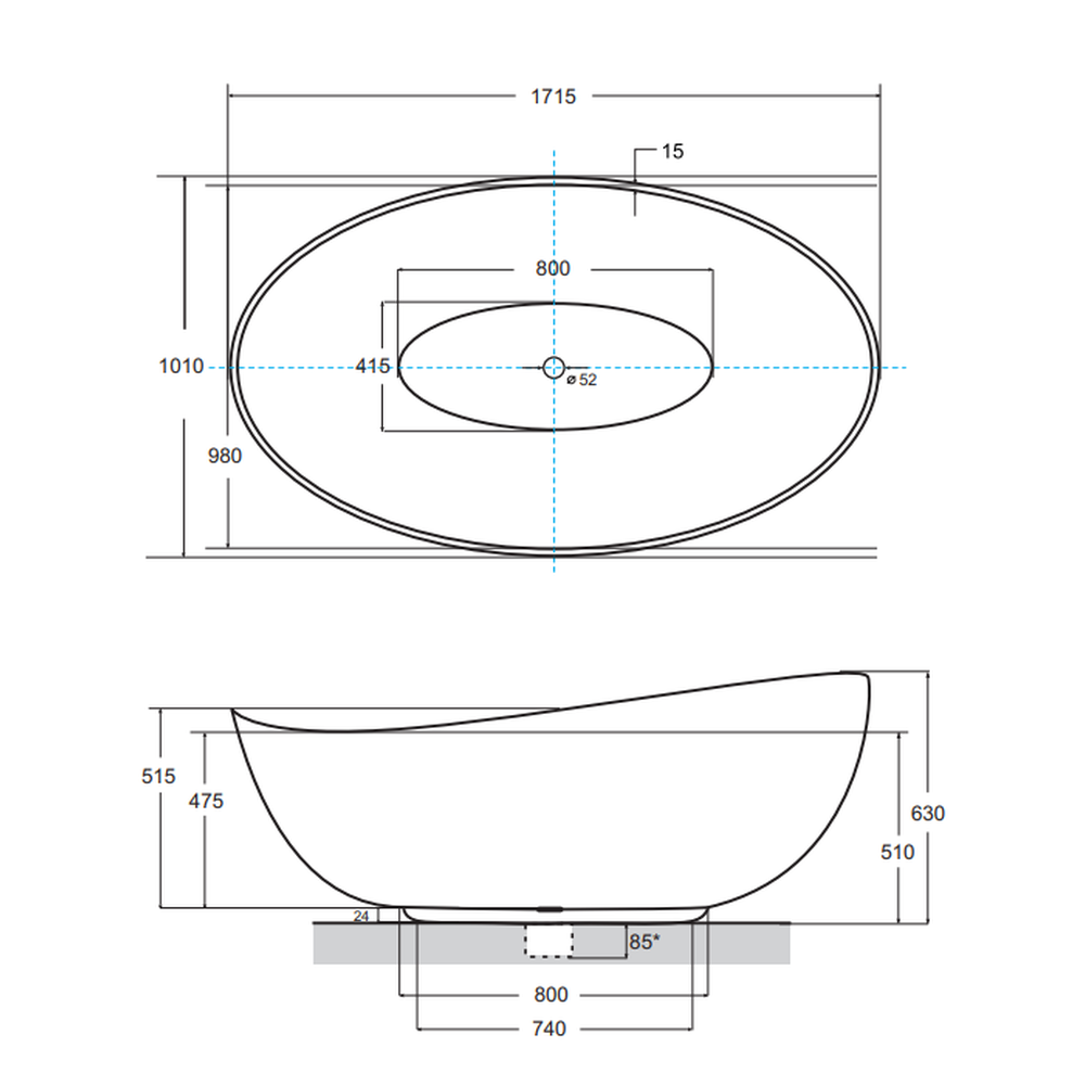 Cada freestanding SIYA este proiectată pentru montaj independent, fără integrare în mobilier. Realizată prin turnare minerală (tehnologia Mineral DuraBe), oferă o suprafaţă netedă, fără pori, cu rezistenţă ridicată la zgâriere şi decolorare. Design-ul oval cu margine foarte subțire creează o prezenţă elegantă, fiind ideală pentru montaj lângă baterie de tip floor. Volumul de apă este de circa 350 l, iar greutatea produsului este de aproximativ 115 kg. Baza de montaj necesită canal de sifonare în pardoseală.