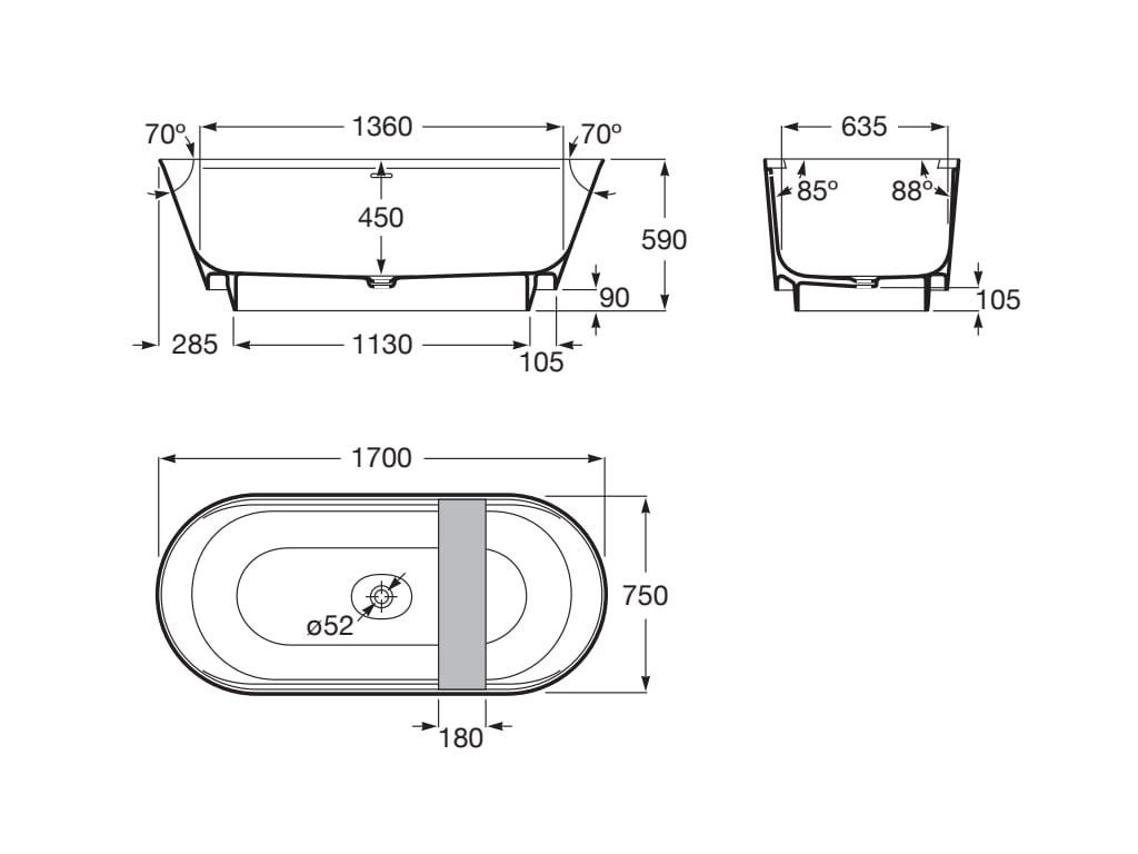 - Instalare freestanding — flexibilitate maximă în designul băii.