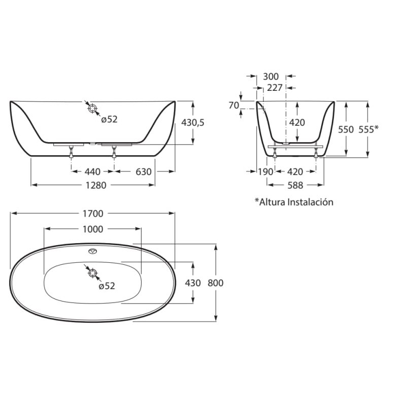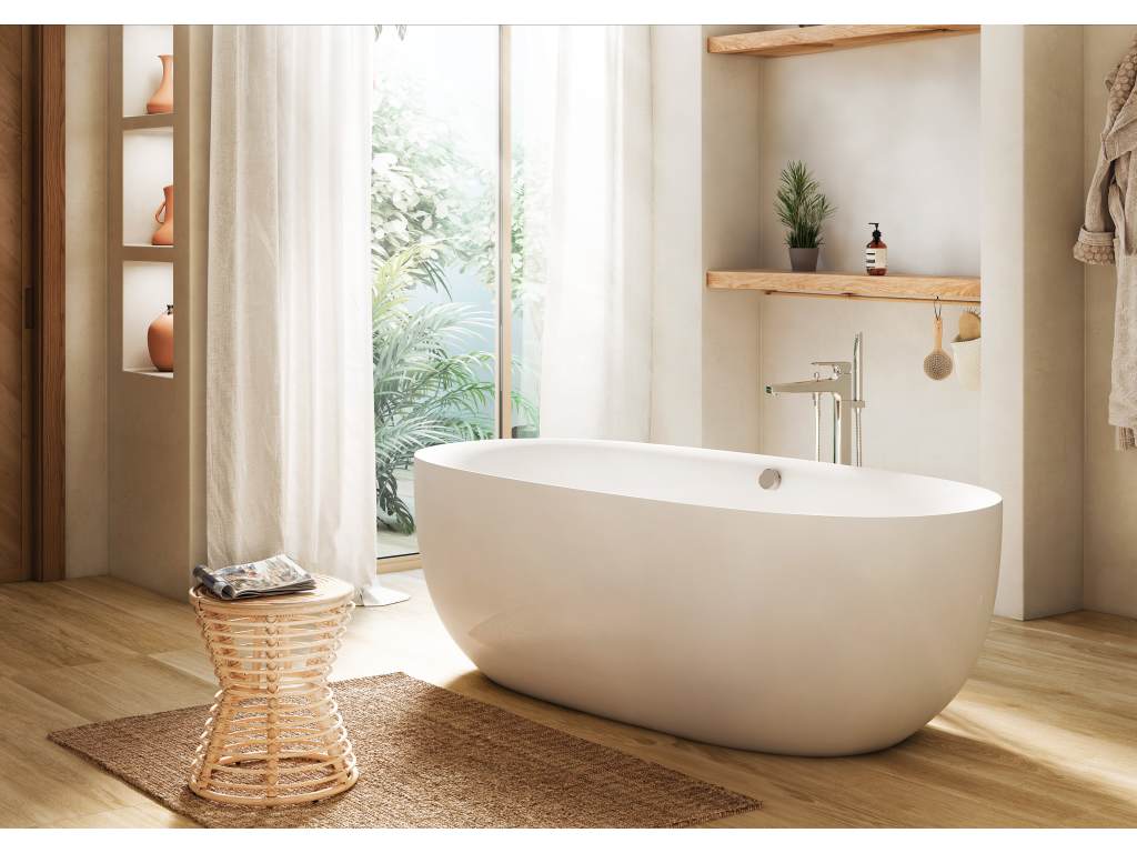 Cada freestanding Virginia, cu formă ovală, este destinată pentru utilizarea unei persoane și oferă posibilitatea instalării universale, fie în centru, fie lângă perete. Fabricată din acril sanitar de înaltă calitate, asigură suprafață netedă, ușor de curățat și rezistentă la decolorare. Dimensiuni: 1 700x800x560 mm, greutate 31 kg, diametru scurgere 52 mm. Sifonul și sistemul de preaplin sunt incluse, iar cada se sprijină pe picioare integrate.