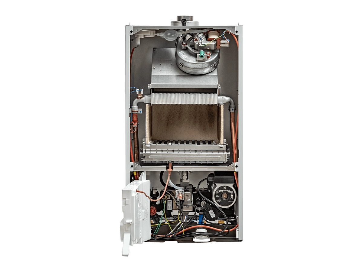 Presiunea maximă: încălzire - 3 bar, ACM - 8 bar. Racorduri: încălzire - 3/4″, ACM - 1/2″.