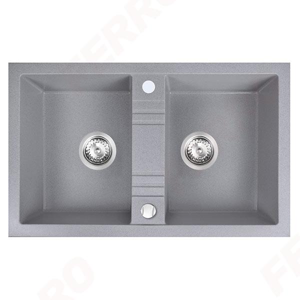 Chiuveta bucatarie Ferro MEZZO II 2 cuve (patrat) 48 cm x 78 cm+sifon, gri