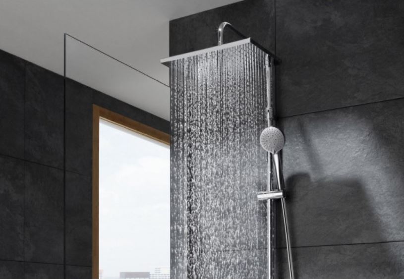 - Duș fix de 360 × 240 mm, formă pătrată, cu funcție Rain.