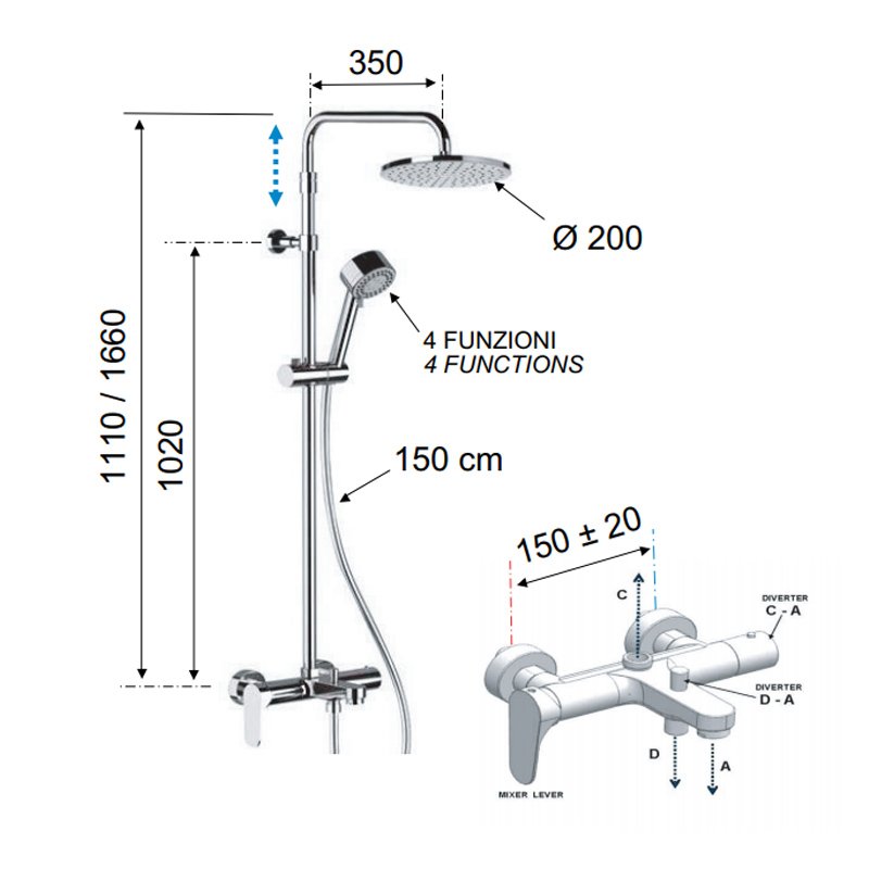 Sistemul de duș din seria Omega este proiectat pentru montaj pe perete și este echipat cu baterie externă „cadă/duș” cu comutator integrat (diverter). Construcția prevede racord superior G 3/4" și racord inferior G 1/2".