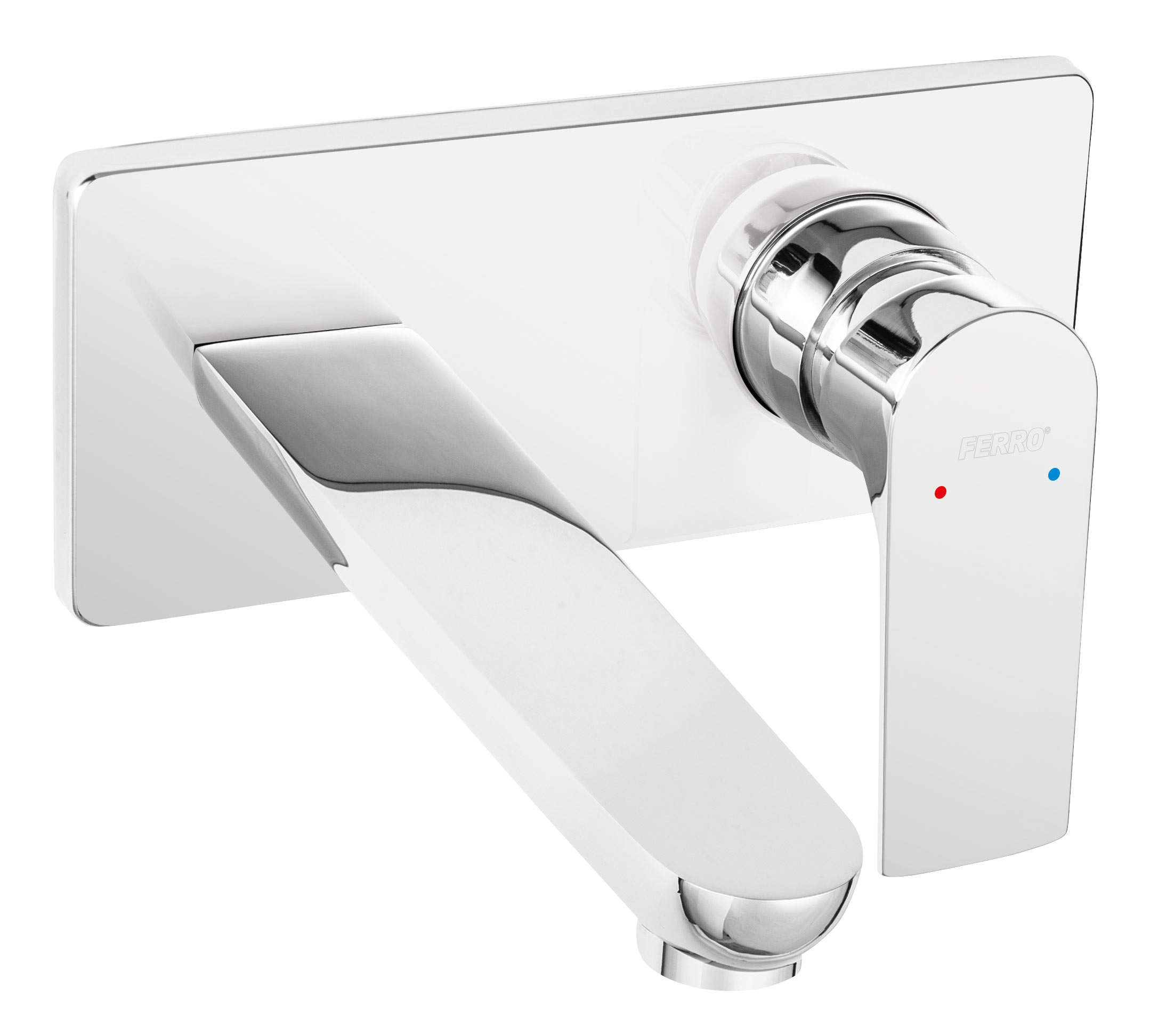 Bateria de lavoar încastrată din colecția Square se definește prin linii drepte și unghiuri precise, fiind o piesă centrală pentru băile cu design geometric. Sistemul monocomandă cu mâner plat oferă o priză ergonomică și o reglare facilă a parametrilor apei. Montajul ascuns permite mascarea componentelor tehnice în perete, lăsând la vedere doar elementele estetice placate cu un strat generos de crom. Pipa cu lungime de 185 mm este proiectată pentru a asigura un unghi de cădere a apei care să minimizeze reflexia și stropirea pe marginile lavoarului.
