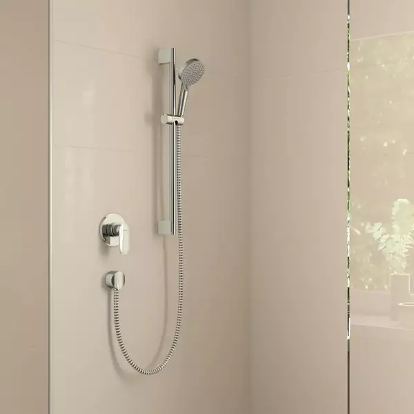 Bateria de duș încastrată Hansgrohe VERNIS BLEND îmbină designul modern cu funcționalitatea germană de înaltă calitate. Cu un aspect minimalist și elegant, această baterie oferă un control precis al temperaturii și debitului apei, pentru o experiență de duș confortabilă și sigură. Fabricată din materiale premium, rezistente la uzură și coroziune, este soluția perfectă pentru băi contemporane.