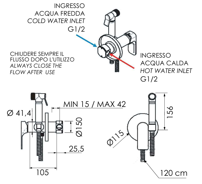 Acest produs reprezintă un set complet de duș igienic și poate fi montat fără achiziții suplimentare.