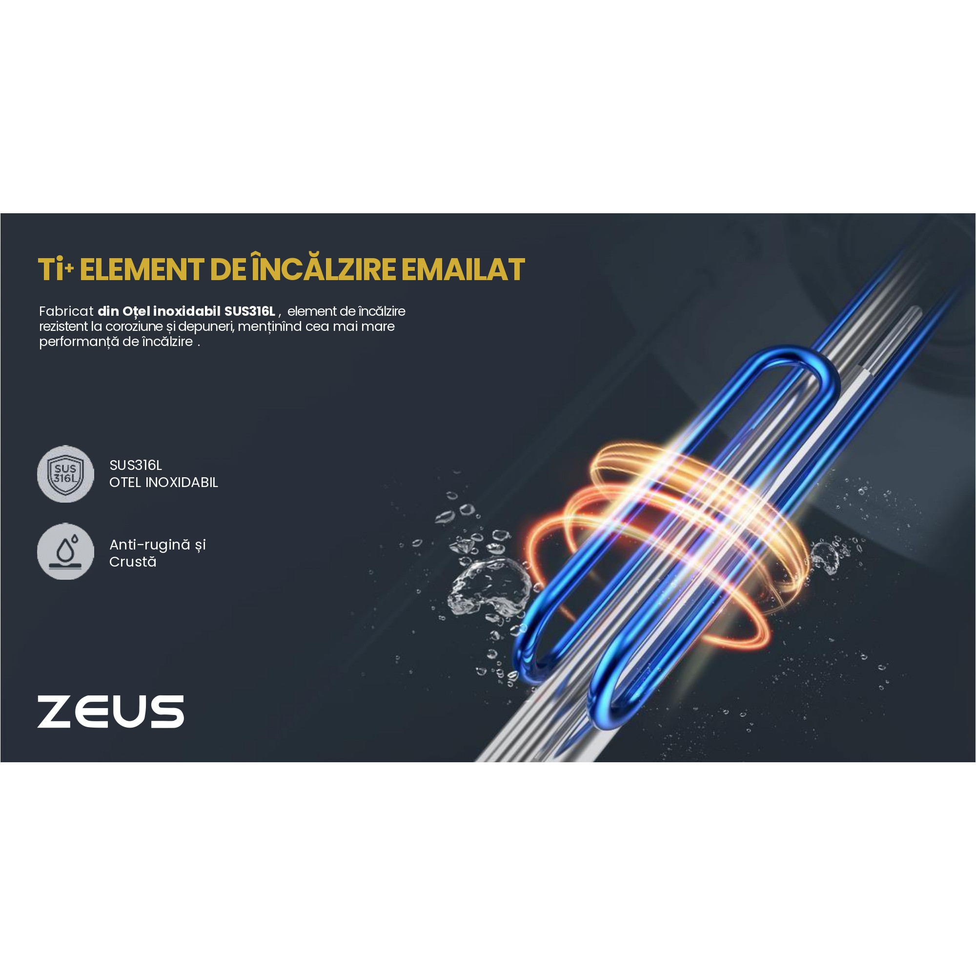 Elementul de incalzire SUS316L emailat asigura performanta constanta, iar stratul antibacterian Ag+ (99,99%) mentine apa curata si sigura.