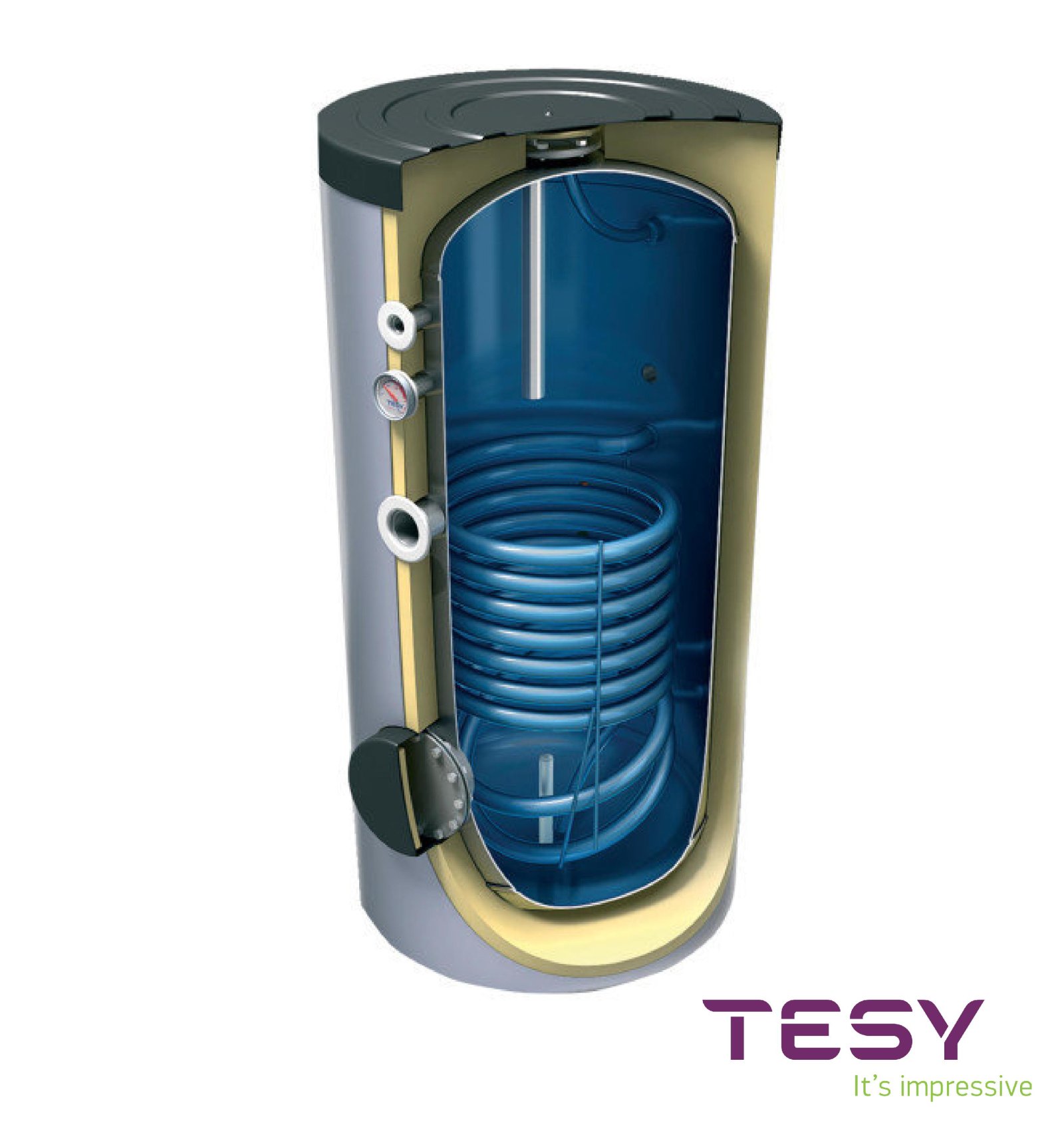 Boiler indirect Tesy are o capacitate mare și poate fi montat pe pardoseală, cu un schimbător de căldură, este realizat din oțel de calitate superioară, emailat la interior, prevăzut cu protecție catodică cu anod de magneziu.
