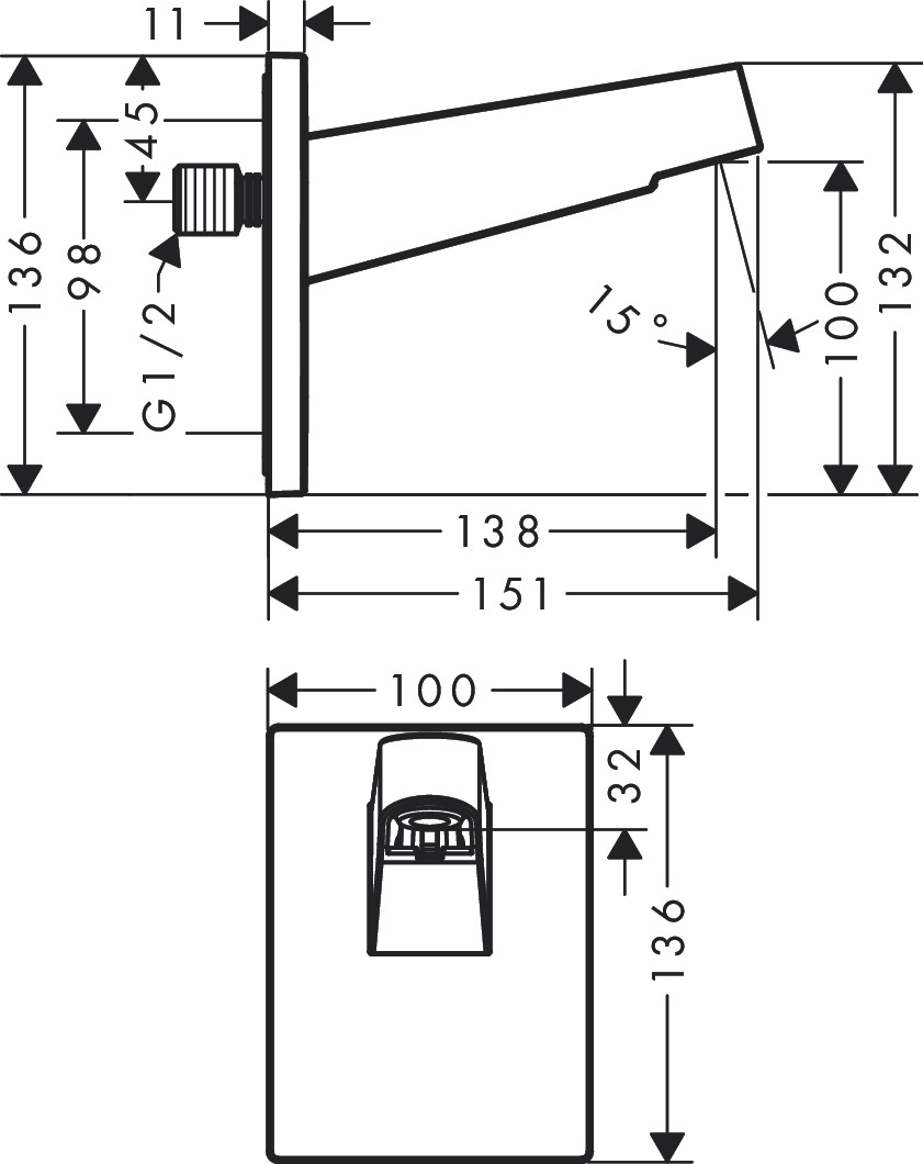 Brat dus Hansgrohe Pulsify, 15 cm