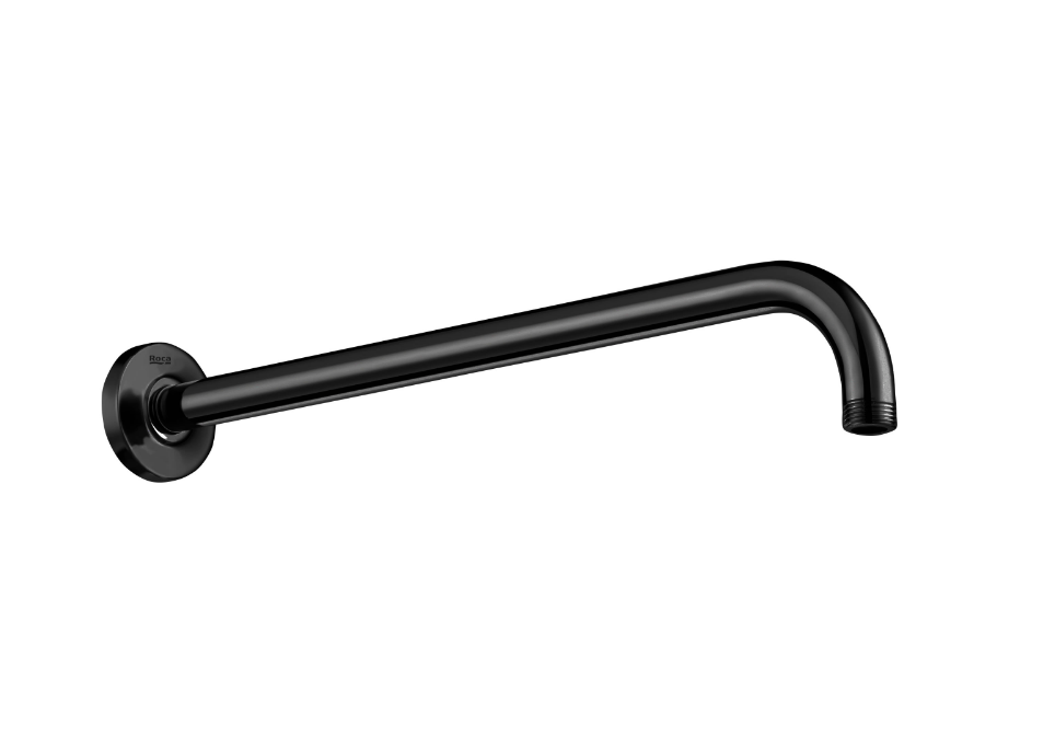 Braţul de duş montat pe perete Roca este conceput pentru fixarea capului de duş la 400 mm de perete, oferind o poziţionare confortabilă a jetului de apă. Forma sa dreaptă şi robustă asigură stabilitate şi compatibilitate cu majoritatea sistemelor de duş standard. Finisajul negru lucios (Titanium Black / Everlux®) adaugă un aspect elegant şi modern băii.