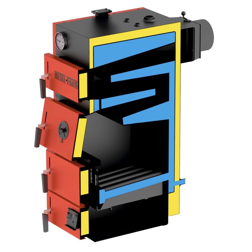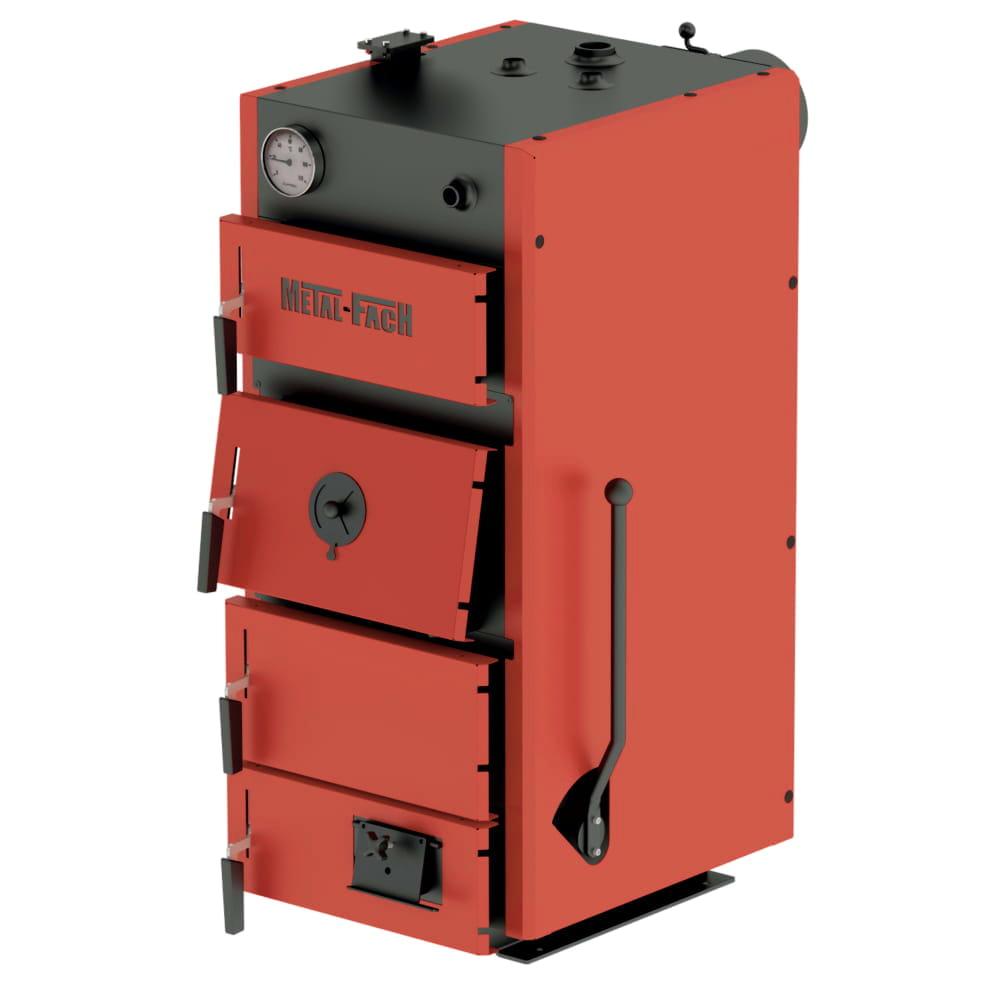 Cazanul tradițional cu combustibil solid Metal-Fach se-Max II 10 kW încălzește încăperile cu o suprafață de până la 80 mp. m. Puterea nominală de căldură este de 10 kW, iar eficiența atinge 81%. Combustibil-cărbune și lemn. Alimentarea camerei de ardere este manuală, prin uși largi.