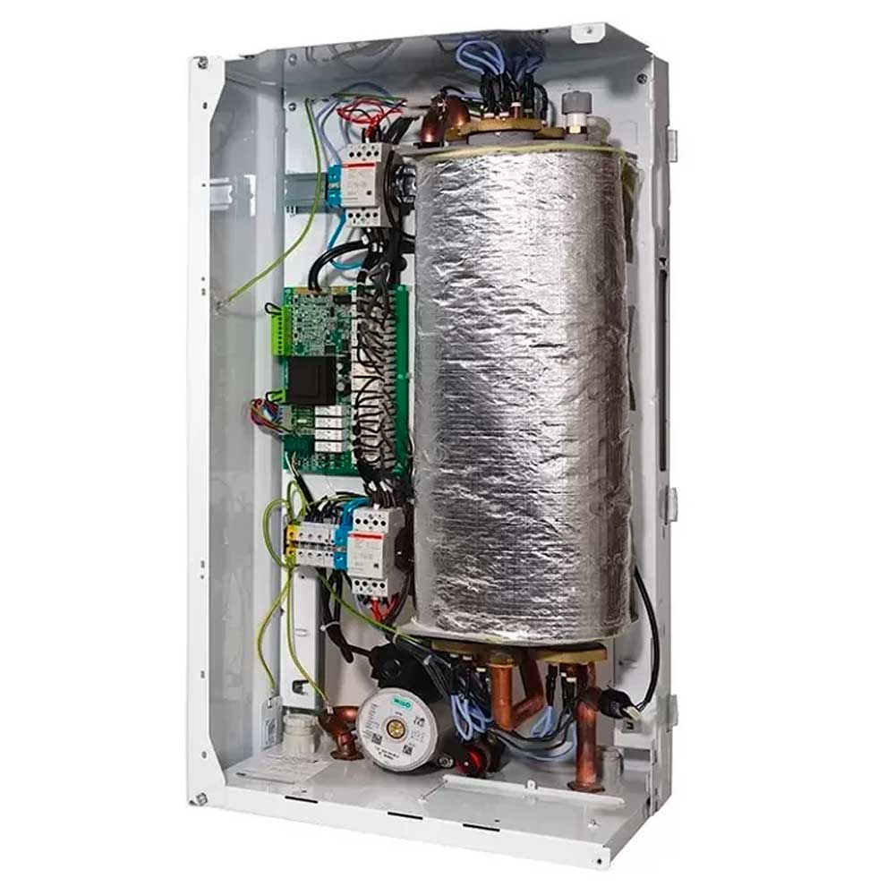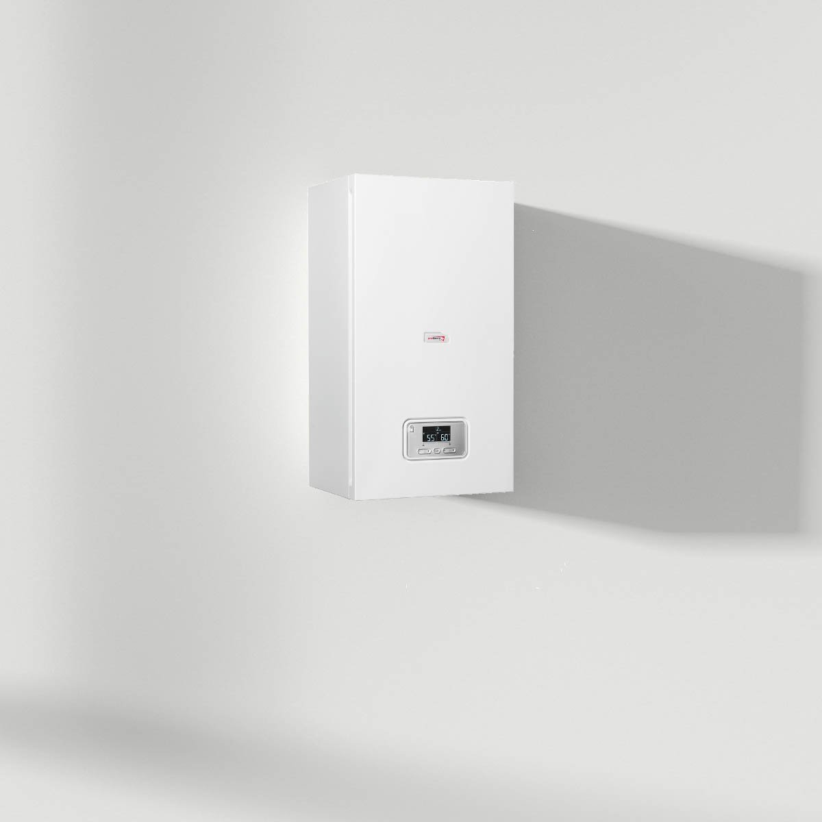 Centrala electrică Protherm RAY 21 KE este un generator termic pentru sisteme de încălzire rezidenţiale şi comerciale uşoare, proiectat pentru conectare pe perete şi integrare cu boilere externe pentru producţia de apă caldă menajeră. Asigură o putere utilă de 21 kW, modulaţie pe trepte prin rezistenţe imersate (3 × 7 kW) şi control microprocesor cu afişaj digital, permiţând reglaje de la 25 °C până la 85 °C.