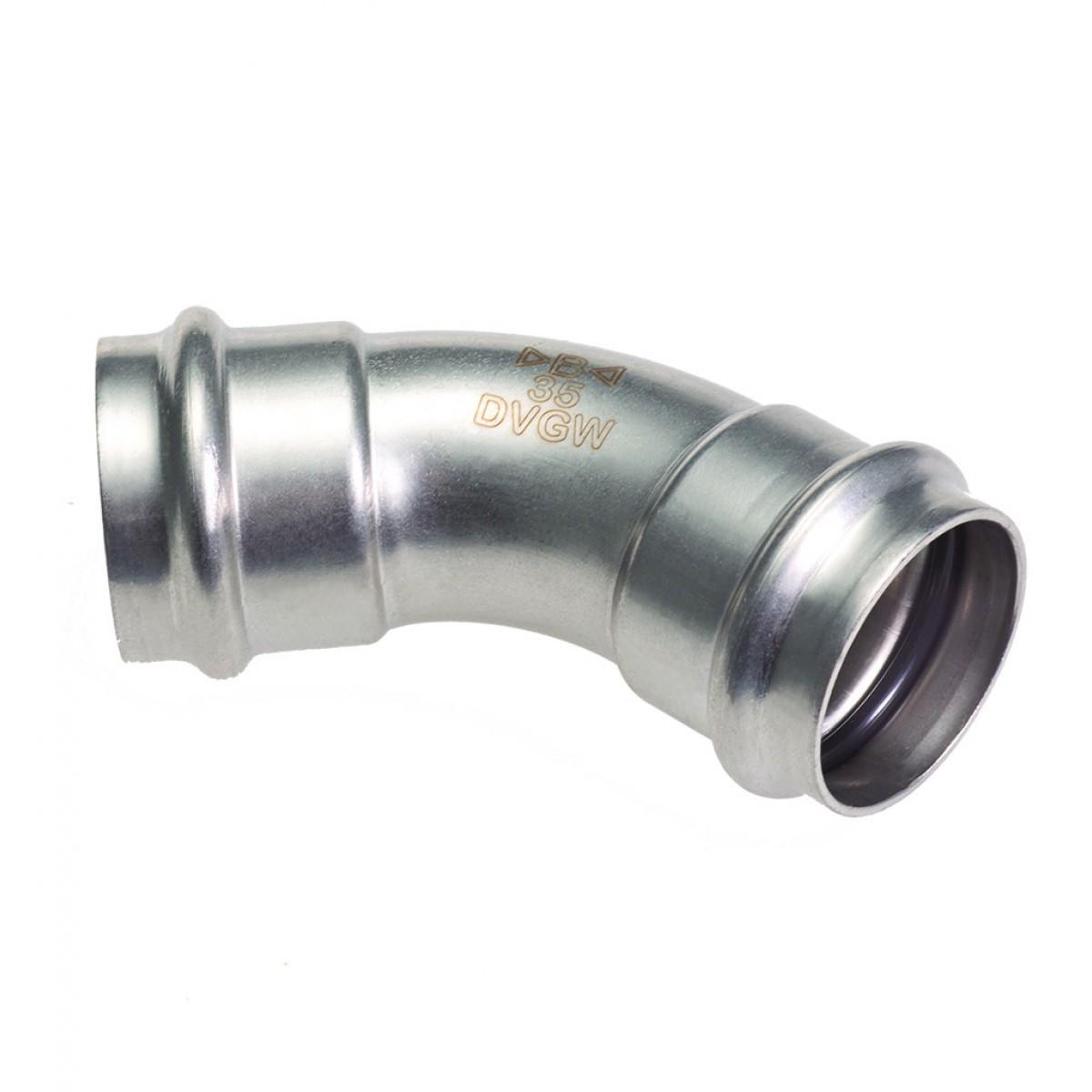 Fitingurile press din inox pot fi utilizate în majoritatea tipurilor de echipamente de uz casnic: instalații sanitare, încălzire, răcire, combustibil, canalizare (pentru apa de ploaie), precum și în diverse echipamente industriale. Cotul este fabricat din oțel inoxidabil de înaltă calitate.