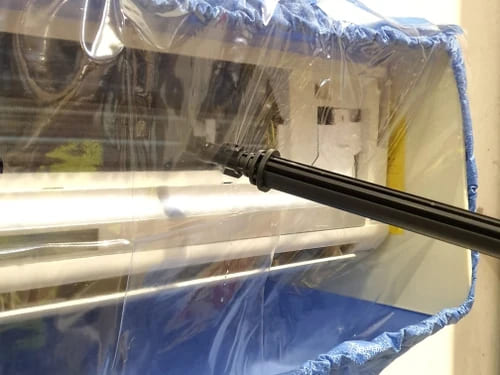 Husa se fixează și se utilizează simplu, datorită sistemului de prindere ajustabil și furtunului de evacuare a apei. Acest accesoriu eficient colectează reziduurile și oferă protecție pentru pereți, podea și mobilier, transformându-l într-un instrument practic și indispensabil pentru profesioniștii din domeniul climatizării.