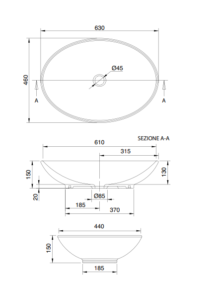 Compatibilitate și condiții de montaj: montaj pe blat; se recomandă utilizarea bateriilor pentru lavoar adecvate ca înălțime; necesită ventil și sifon compatibile, neincluse.