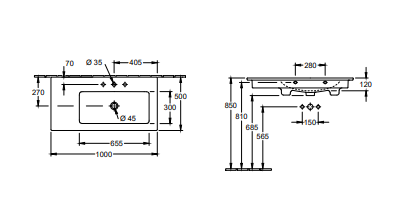 Lavoarul pentru mobilier Villeroy & Boch Venticello este conceput pentru a valorifica spațiul băii și oferă un modul larg de spălare de 1000 mm. Forma dreptunghiulară cu adâncimea de 500 mm și înălțimea de 170 mm asigură o baie spațioasă pentru utilizarea zilnică, iar suprafața lucioasă de culoare albă facilitează întreținerea și curățarea. Modelul este echipat cu preaplin și un orificiu pentru baterie, ceea ce simplifică configurarea.