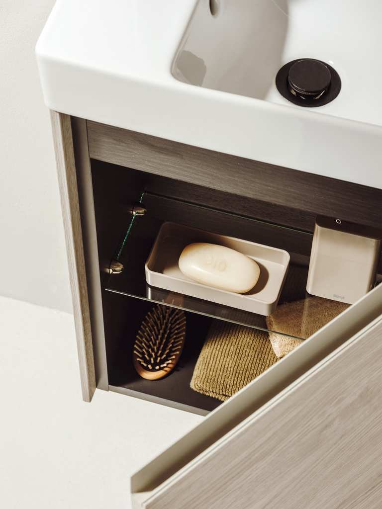 Lavoarul suspendat ROCA Ona este conceput pentru băi compacte, oferind o soluție funcțională și vizual ușoară pentru zona de spălare. Forma dreptunghiulară, cu dimensiuni de 400×320×150 mm, se integrează elegant pe perete, eliberând spațiul de pe podea și facilitând curățarea. Orificiul central pentru baterie permite montarea de robinete standard, iar pereții subțiri din material Fineceramic® conferă rezistență și o suprafață albă lucioasă, ușor de întreținut.