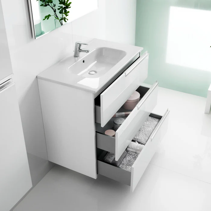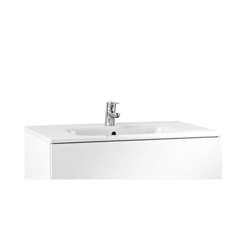 Lavoarul Roca Victoria-N este proiectat pentru montaj pe mobilier de baie, oferind o soluție funcțională pentru zona de spălare în combinație cu mobilierul Victoria-N. Forma dreptunghiulară și dimensiunile 1000x460x160 mm oferă un spațiu generos pentru utilizare și plasarea accesoriilor. Realizat din ceramică sanitară de înaltă calitate cu finisaj lucios alb, materialul este rezistent la umiditate și ușor de întreținut. Designul include un orificiu pentru baterie și preaplin integrat, facilitând montajul și utilizarea.