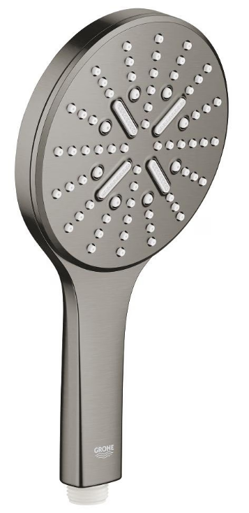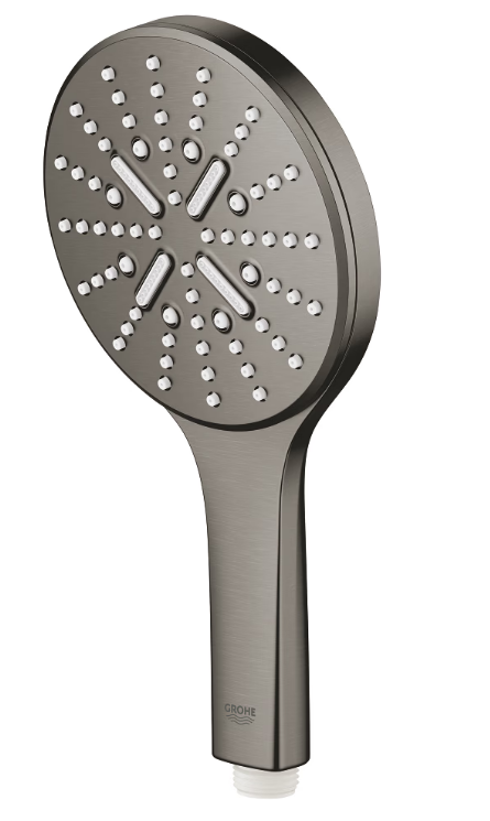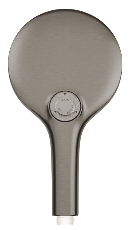 Para de duș manuală GROHE Rainshower SmartActive cu finisaj brushed hard graphite combină designul modern cu funcționalitatea pentru o experiență de duș confortabilă. Diametrul capului este de 130 mm, oferind o distribuție largă a apei. Cele trei tipuri de jet — Rain, Jet și ActiveMassage — permit ajustarea intensității și caracterului fluxului de apă. Tehnologiile GROHE DreamSpray și SmartTip asigură distribuirea uniformă a apei și schimbarea ușoară a tipurilor de jet printr-o simplă apăsare. Sistemul ECOJoy reduce consumul de apă până la 8,5 l/min fără a compromite performanța, iar SpeedClean facilitează îndepărtarea depunerilor de calcar. Compatibilă cu majoritatea furtunurilor standard.