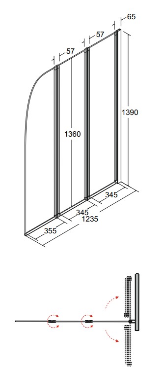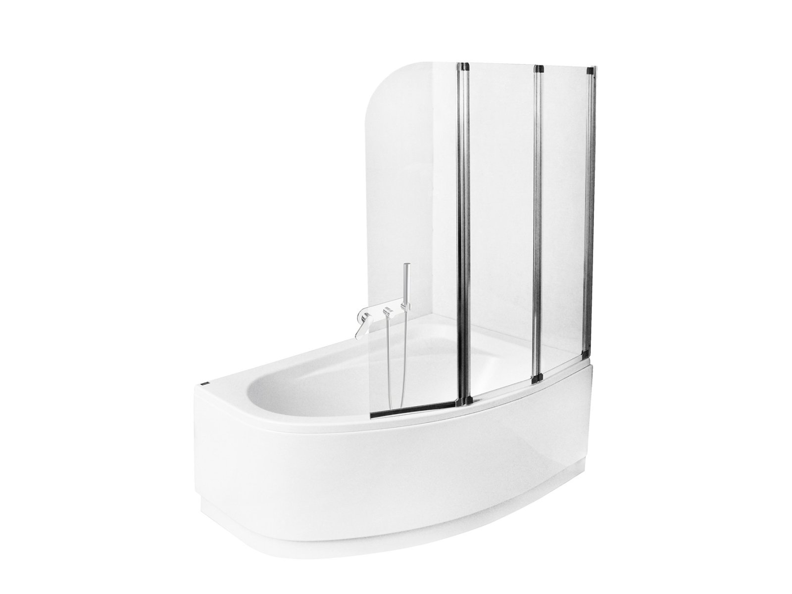 Paravanul de cadă din trei părţi este proiectat pentru protejarea băii împotriva stropirii apei la duş sau la folosirea căzii. Cele trei elemente mobile sunt fabricate din sticlă securizată transparentă de 4 mm, oferind siguranţă și durabilitate. Profilul este metalic/aluminiu cu finisaj cromat lucios, oferind un aspect modern și neutru. Construcția permite montaj universal — instalare pe partea dreaptă sau stângă; reglajul la perete compensează eventualele denivelări. Dimensiunea 123,5x139 cm se potrivește majorității căzilor standard, а трисекционная складная конструкция économisează spațiu și oferă flexibilitate în utilizare.