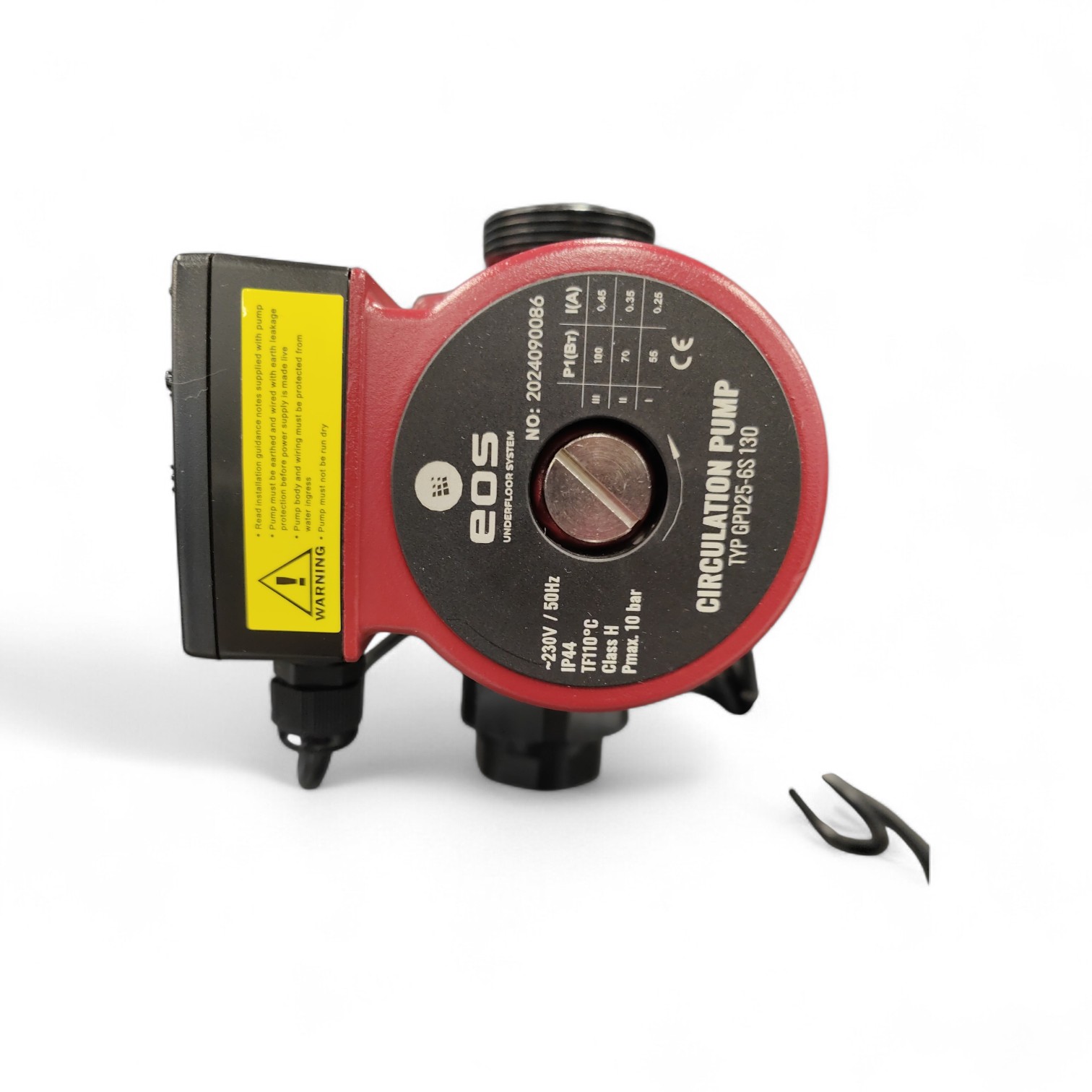 Pompa de circulatie EOS GPD 130 25-6S pentru incalzire centrala, Hmax 6 m, racord DN25 (1½”), distanta intre axe 130 mm, 3 trepte de viteza, 230V, corp din fonta, montaj standard.