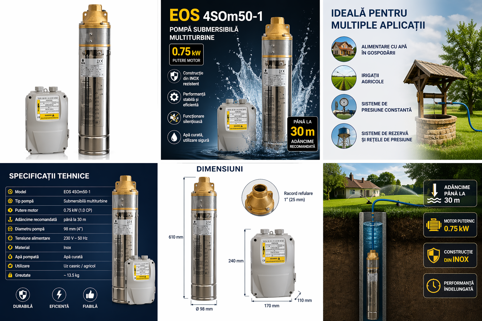 Este ideală pentru puțuri forate de până la 30 metri, fiind potrivită pentru alimentarea cu apă a locuințelor, fermelor sau sistemelor de irigații.
