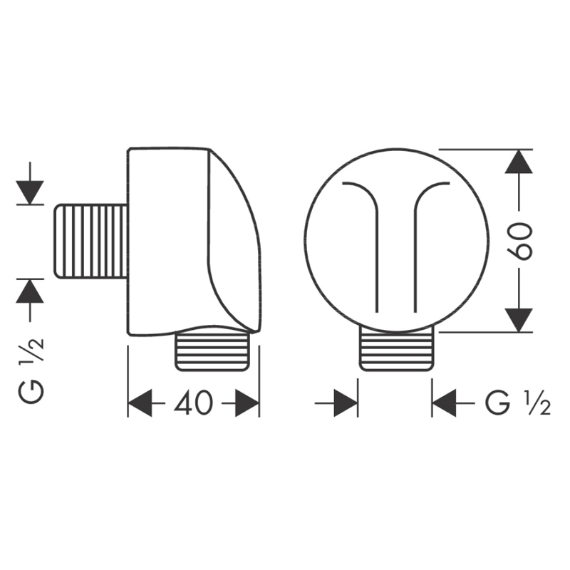Racord de perete pentru furtun de duş — setul include un cons de perete cu ieşire metalică şi corp acoperit cu plastic, finisat mat negru. Racordul este proiectat pentru furtunuri de duş cu piuliţă conică sau cilindrică la ambele capete, cu racord filetat standard G 1/2. Produsul nu include supapă anti‑întoarcere, ceea ce simplifică construcţia şi asigură compatibilitate largă cu diverse furtunuri.