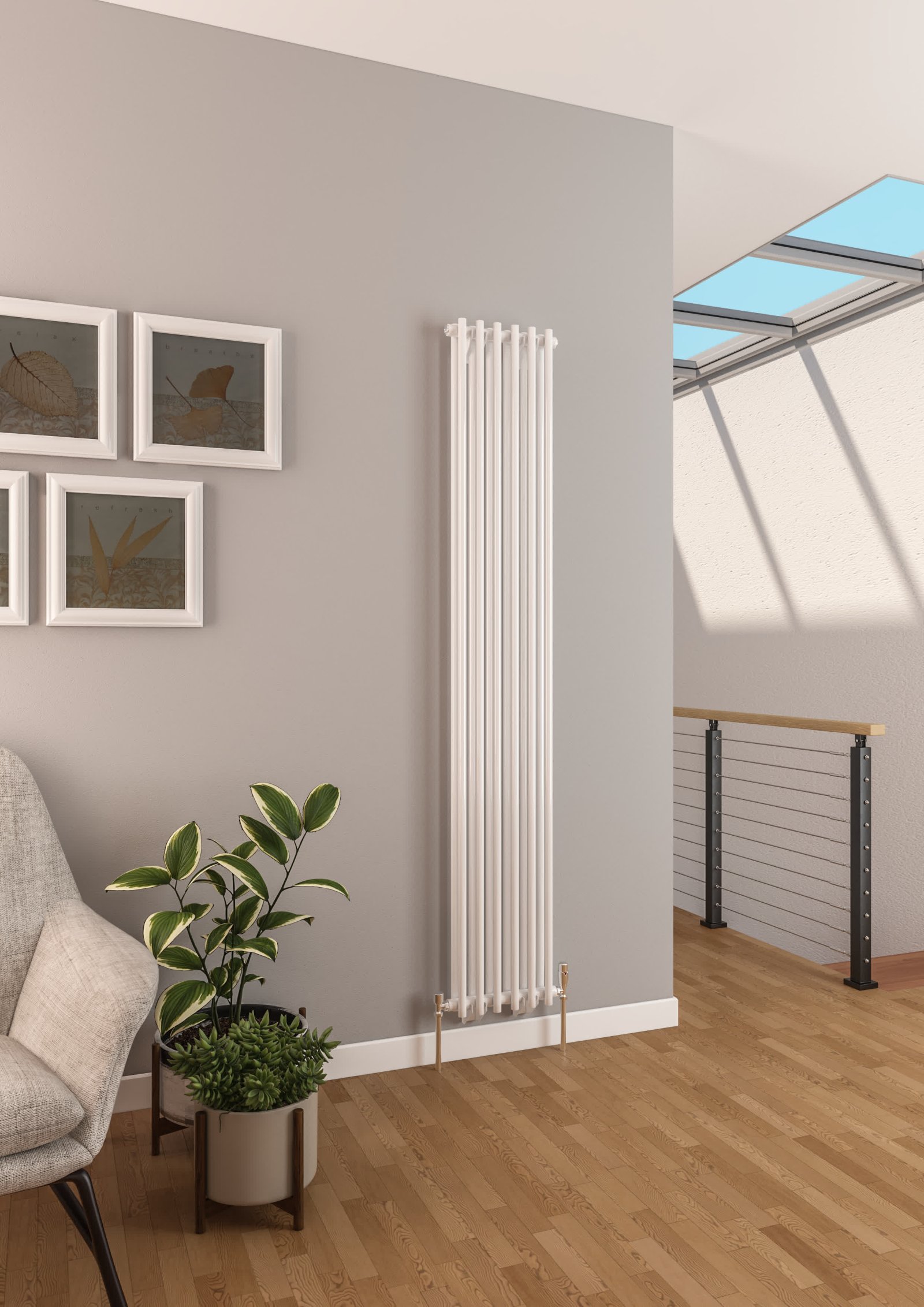 Radiator de baie din oțel, dimensiuni 310x1800 mm, finisaj alb mat. Se montează pe perete și oferă o încălzire eficientă a băii, fiind suficient de înalt pentru a distribui căldura pe verticală și a ajuta la uscarea prosoapelor. Modelul funcționează pe apă (agent termic) și poate fi echipat ulterior cu un TEN electric compatibil pentru a obține un model combinat (apă + electric).