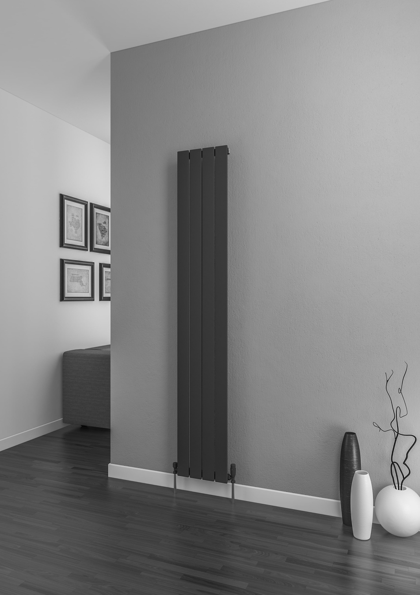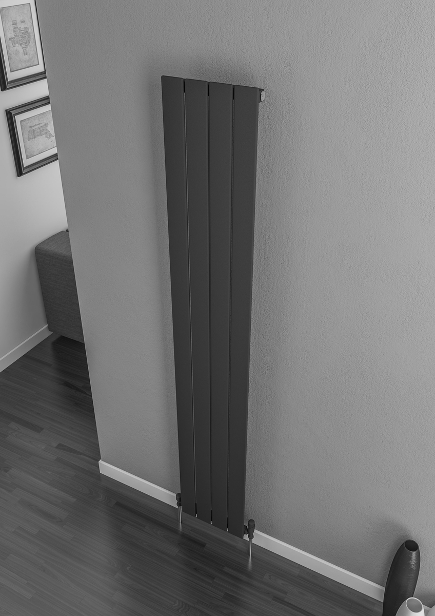 Radiator de baie din oțel, dimensiuni 295x1800 mm, finisaj negru mat. Se montează pe perete și oferă o încălzire eficientă a băii, fiind suficient de înalt pentru a distribui căldura pe verticală și a ajuta la uscarea prosoapelor. Modelul funcționează pe apă (agent termic) și poate fi echipat ulterior cu un TEN electric compatibil pentru a obține un model combinat (apă + electric).