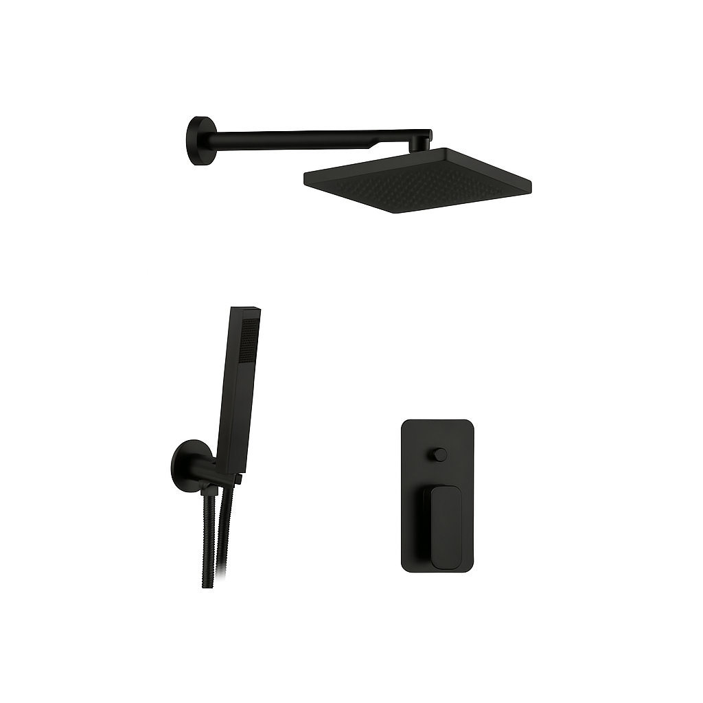 Set TIARA dus patrat (cap de dus 20x20cm + baterie incorporata + dus manual), negru mat