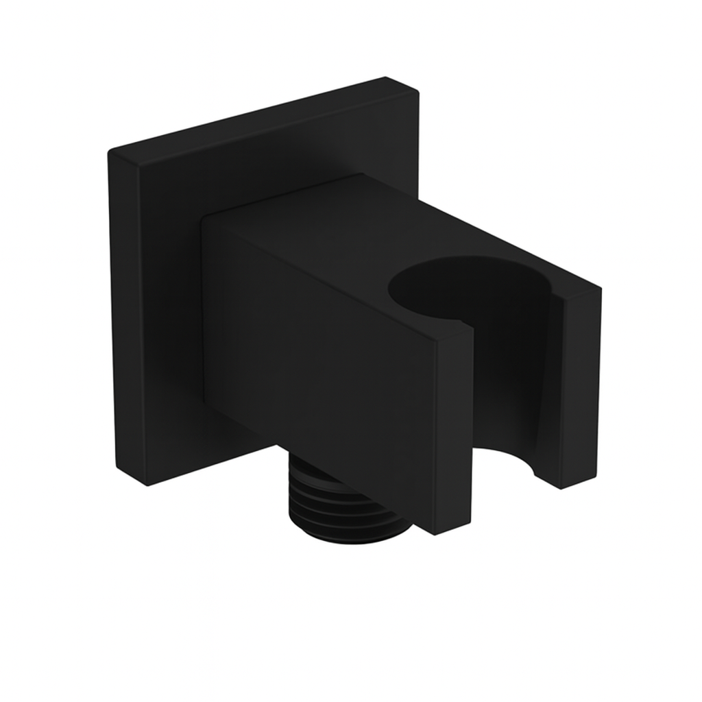 Suportul de duș compact și racord DANIEL este conceput pentru conectarea furtunului flexibil de duș și fixarea capului de duș manual pe perete. Carcasa produsului este realizată din alamă, ceea ce conferă rezistență la coroziune și durabilitate în mediul umed specific băii. Designul pătrat și finisajul negru mat permit integrarea discretă în amenajările moderne. Construcția ergonomică facilitează montajul pe sisteme standard de duș cu filet G 1/2″, asigurând o conexiune fiabilă și poziționare confortabilă a capului de duș.