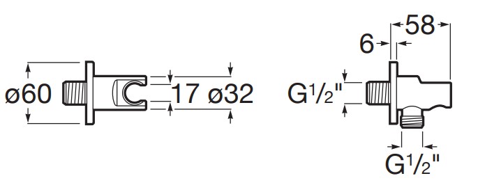Racord de perete cu ieşire pentru furtun de duş şi suport fix pentru para de duş, incluzând cot de apă şi prindere pentru duş. Racordul pentru apă este conform standardului G 1/2", compatibil cu majoritatea furtunurilor de duş. Carcasa este metalică cu finisaj Matt Black, asigurând rezistență la coroziune și uzură, și oferă un aspect elegant și discret băii.