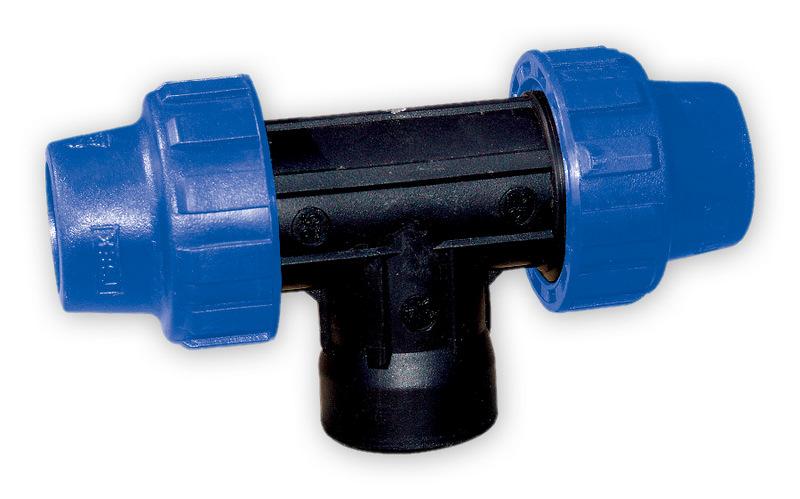 Teul compresiune de 25 mm este utilizat în instalații de apă potabilă și menajeră. Produsul este realizat din polietilenă cu densitate înaltă, ceea ce îi oferă o rezistență mai mare.