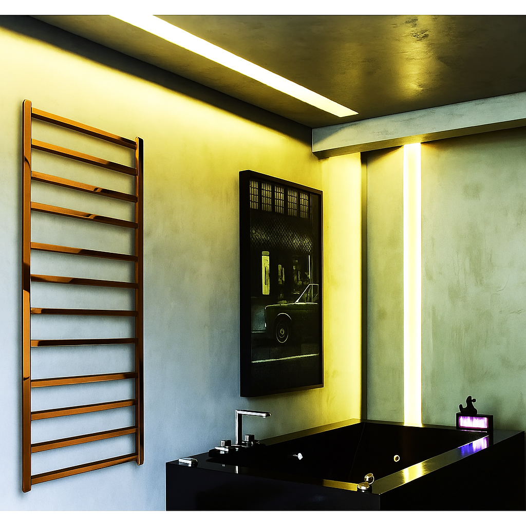Polițesătorul de prosoape Tokyo este proiectat pentru încălzirea eficientă a băilor și uscarea prosoapelor. Realizat din Inox AISI 304, acest model de 800x480x80 mm constă din 8 elemente și dispune de conexiune pe axe de 450 mm cu racord G 1/2. Poate fi echipat ulterior cu un ten electric compatibil.