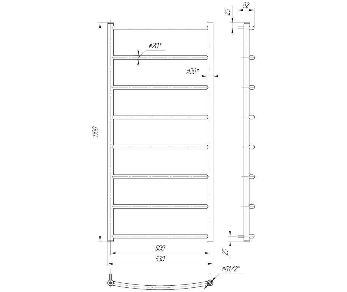 Uscătorul de prosoape Trapetia HP este conceput pentru încălzirea eficientă a băilor și uscarea prosoapelor. Realizat din Inox AISI 304, acest model de 1100x530x130 mm constă din 8 coaste și dispune de distanță intercentrală pentru conectare de 500 mm cu racord G 1/2. Poate fi echipat ulterior cu un incalzitor electric compatibil.