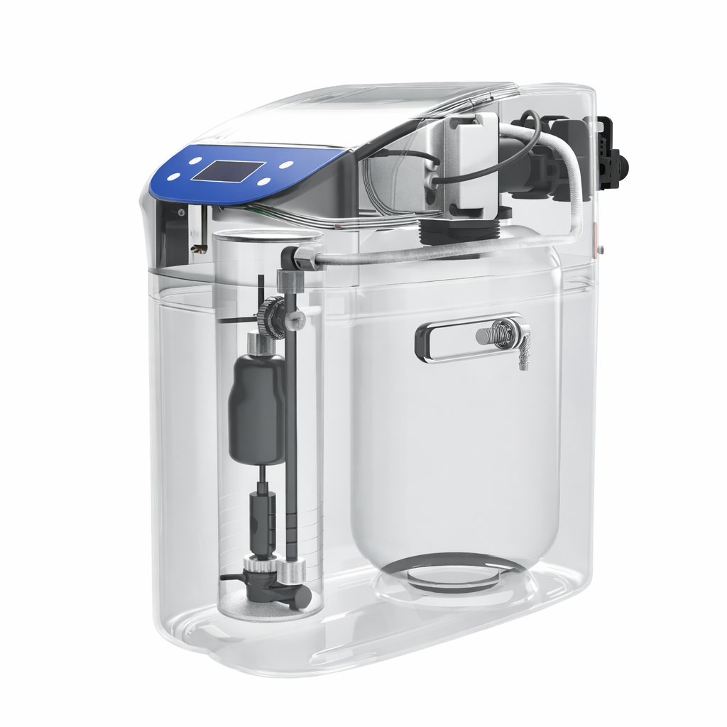 Datorita dimensiunilor compacte, statia poate fi instalata cu usurinta in spatii tehnice, camere de utilitati sau zone dedicate sistemelor de tratare a apei. Sistemul permite montaj simplu pe pardoseala sau in apropierea instalatiei principale de apa, fiind potrivit pentru utilizare casnica.