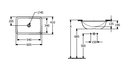 Compatibilitate și montaj: destinată instalării sub blatul mobilierului de baie; decupajul în blat trebuie realizat în conformitate cu forma originală a lavoarului pentru precizie; poate fi montată în blaturi din piatră naturală sau laminate.
