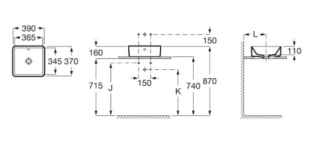 Condiții de montaj: instalare pe blat; se recomandă utilizarea bateriilor de perete sau a bateriilor înalte pentru lavoare pe blat.