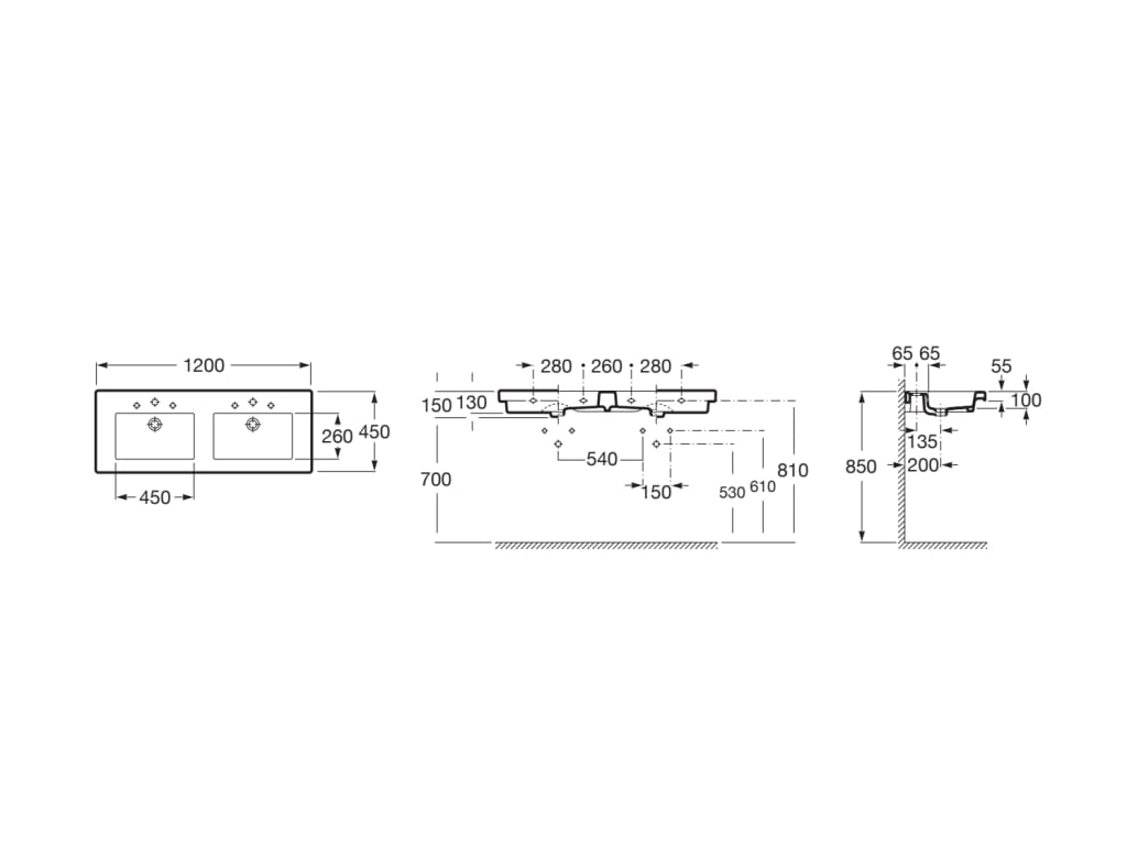 Lavoar suspendat PRISMA dublu 1200 cm