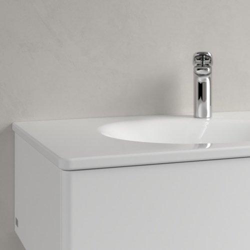Lavoarul pentru mobilier Antao 80x500x150 mm de la Villeroy & Boch este proiectat pentru băi contemporane ce solicită o soluție funcțională și bine definită pentru zona de spălare. Forma dreptunghiulară extinsă combinată cu materialul TitanCeram și finisajul CeramicPlus creează o suprafață lucioasă, rezistentă la murdărie și ușor de întreținut, iar un singur orificiu pentru baterie poziționat central permite integrarea bateriilor standard. Construcția fără preaplin oferă un design curat și reduce punctele unde se pot acumula impurități.