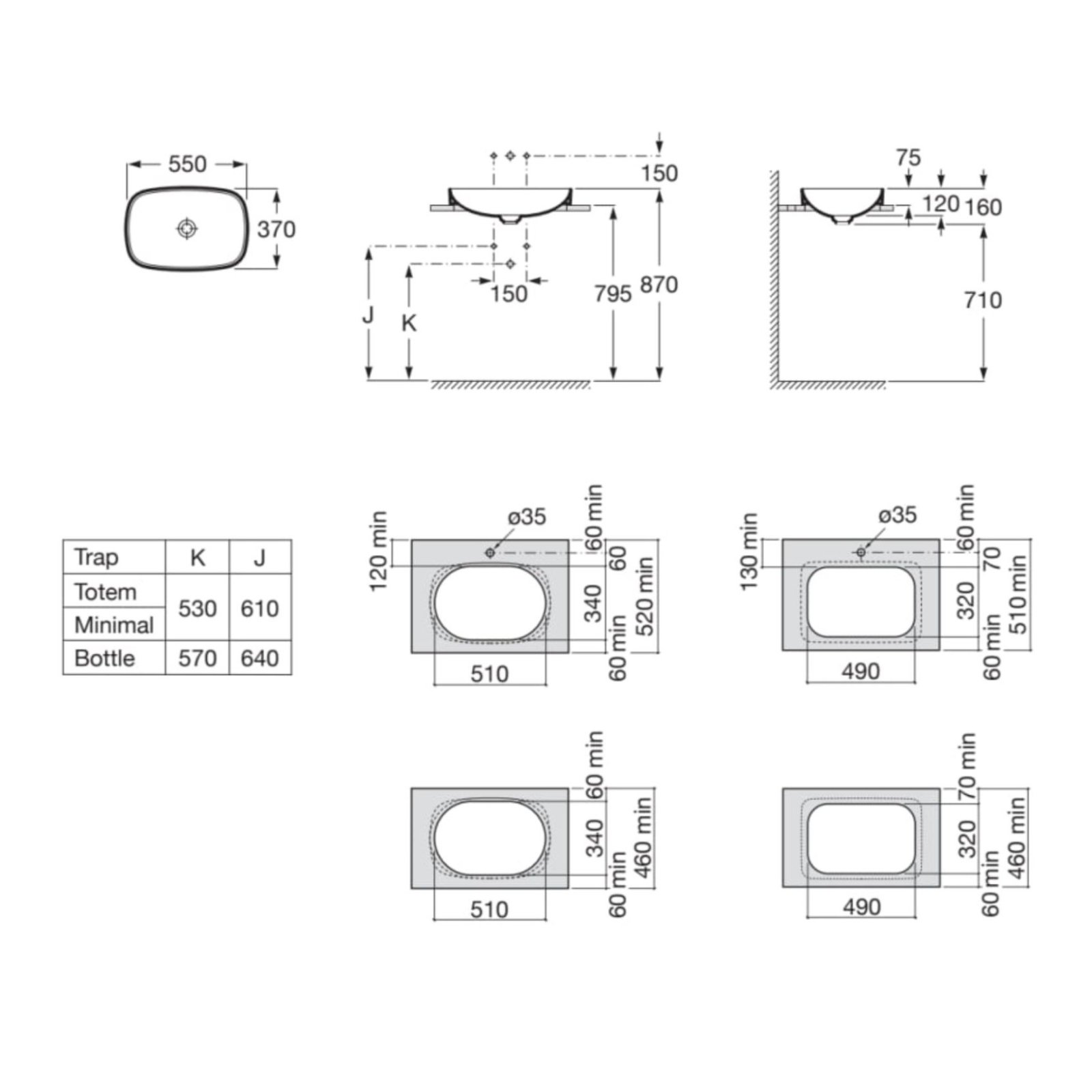 Compatibilitate și condiții de montaj: montaj de tip semi-încastrat, compatibil cu baterii montate pe blat sau pe perete, necesită sifon standard și accesorii de conectare.