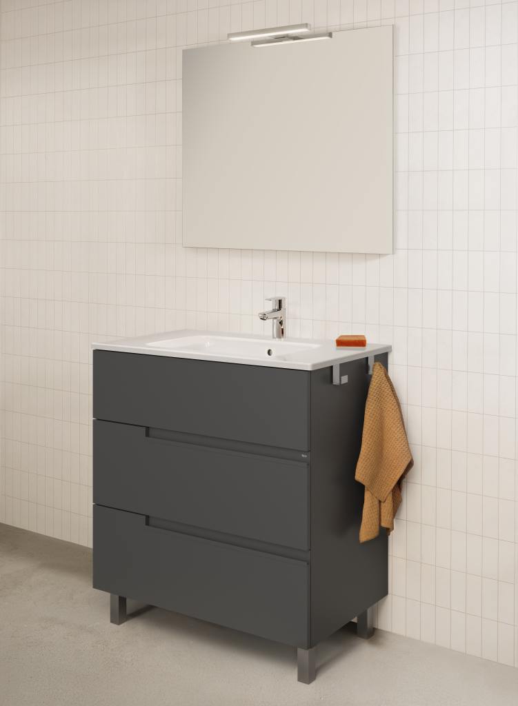 Lavoarul Roca Victoria-N este conceput pentru montaj pe mobilier de baie sau parțial încorporat, oferind o soluție funcțională și ordonată pentru zona de spălare. Forma dreptunghiulară cu chiuvetă centrală și dimensiuni 700x460x160 mm optimizează spațiul și se potrivește mobilierului din colecția Victoria-N. Produsul este realizat din ceramică sanitară cu suprafață lucioasă albă, rezistentă la umiditate și ușor de întreținut. Preaplinul integrat previne revărsarea, iar orificiul pentru baterie este deja pregătit în design.