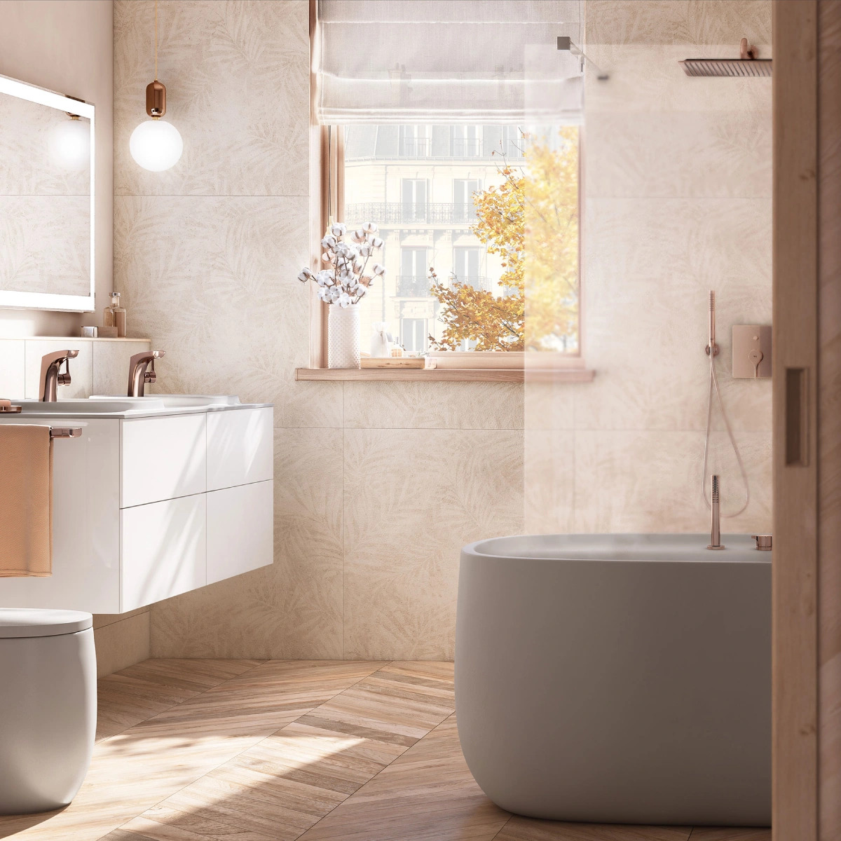 Para de duș Roca Stella Stick Round — para de duș manuală cu un singur jet (Rain), design cilindric “stick” și diametru de 25 mm, ideală pentru un flux delicat și linear. Finisajul este rose gold (PVD), oferind un aspect modern și elegant.
